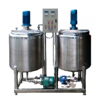 實驗室30-100L小型多功能分散乳化均質(zhì)罐-分散均質(zhì)研磨罐-多功能乳化均質(zhì)研磨機組主要經(jīng)過均質(zhì)機和管線式研磨機的單道或多道回流工序到單罐或雙罐的反復(fù)連續(xù)運行而自動進(jìn)行超微粒研磨,高剪切均質(zhì)、破碎、分散、混合、攪拌等在線運行,并且可以通過控制閥門操控在線管道中物料流向使加工的液料在乳化研磨罐與混合調(diào)配罐罐體(夾層內(nèi)膽可通冷、熱導(dǎo)體進(jìn)行加熱、冷凝作用;不銹鋼罐體內(nèi)外壁作拋處理)之間互相運作循環(huán)及攪拌機的攪拌器低速攪拌和高速分散相結(jié)合的工作機理可使多種物料配者分級分散出料、攪料均勻、分散、乳化、研磨、混合、粉碎、攪拌等操控來實行直接出料提高機械化生產(chǎn), 并通過溫控儀、電控柜組成一體化, 數(shù)字智能化。具有自動溫控等多功能采用一體化組合。